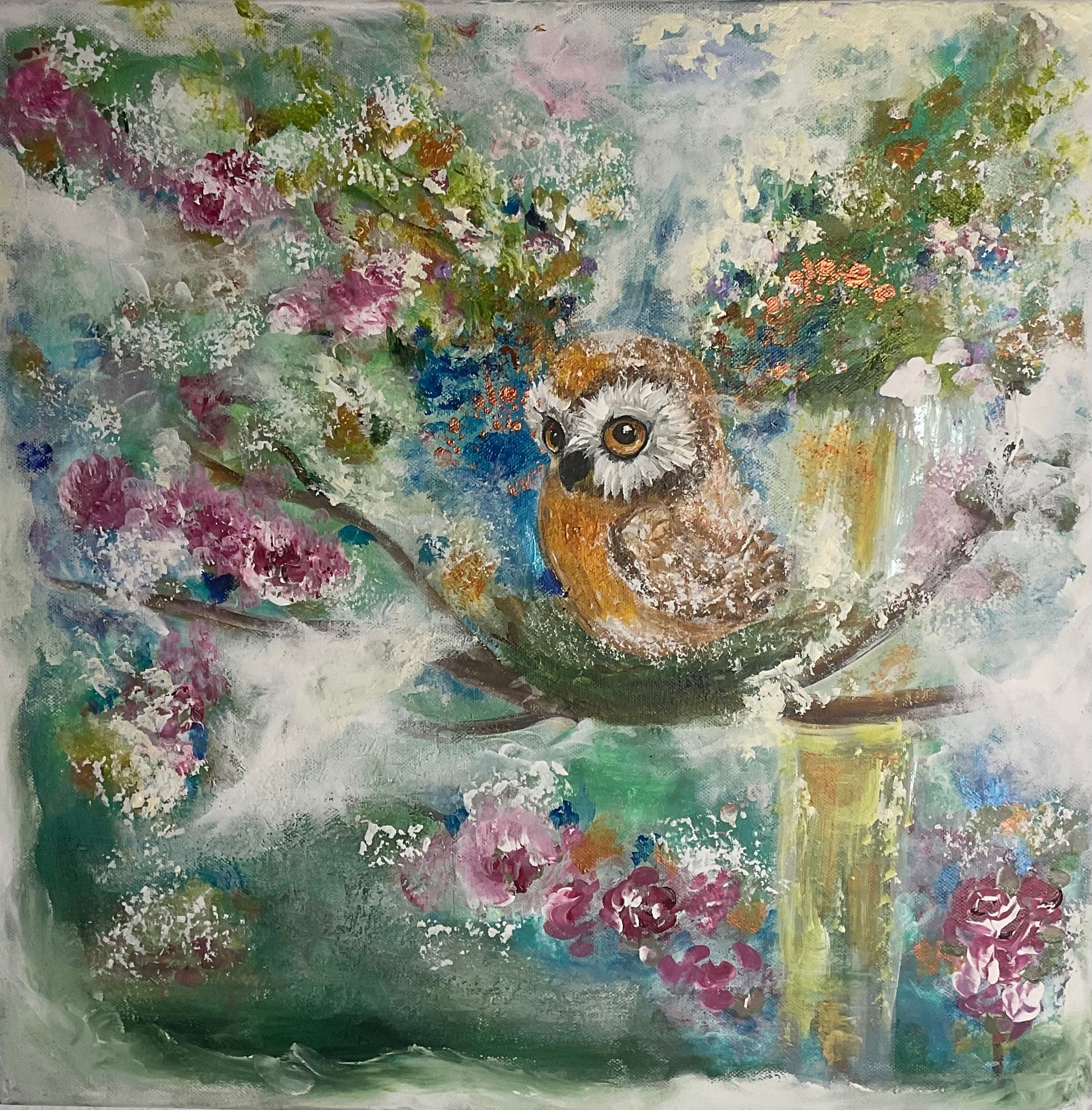 The eyes of the owl are the soul of this painting , deep, clear, and full of presence.